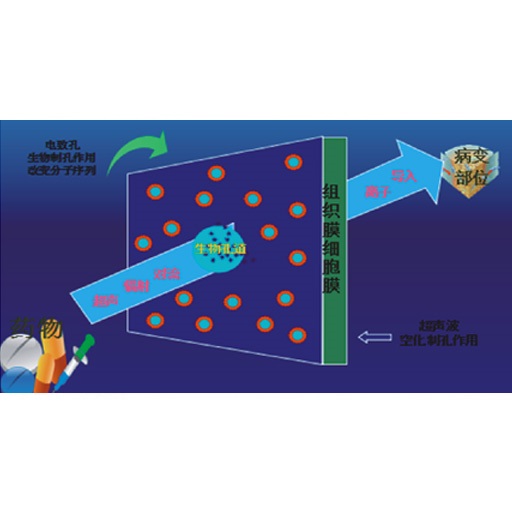 超聲 超聲波作用后皮膚細(xì)胞間隙增至110-120um,作用前約為50um。藥物分子一般直徑為50-70um,藥物可達(dá)深度8-12cm。 空化作用、對流轉(zhuǎn)運及輻射壓作用,使皮膚角質(zhì)脂質(zhì)結(jié)構(gòu)排列的有序性降低,增強(qiáng)電致孔的促滲效果,同時可使藥物離子獲得定向運動的功能,使藥物分子和離子沿著超聲波傳播方向運動。